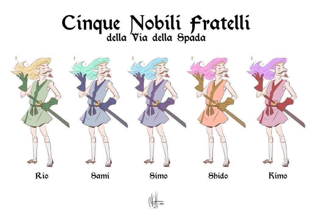 “I Cinque Nobili Fratelli, impegnati nel cammino della via della spada nell’incessante lotta al male. Ognuno di loro indossa una sacra veste di diverso colore e ognuno di loro è vicino ad un elemento naturale. Sono tutti degli insopportabili arroganti.”