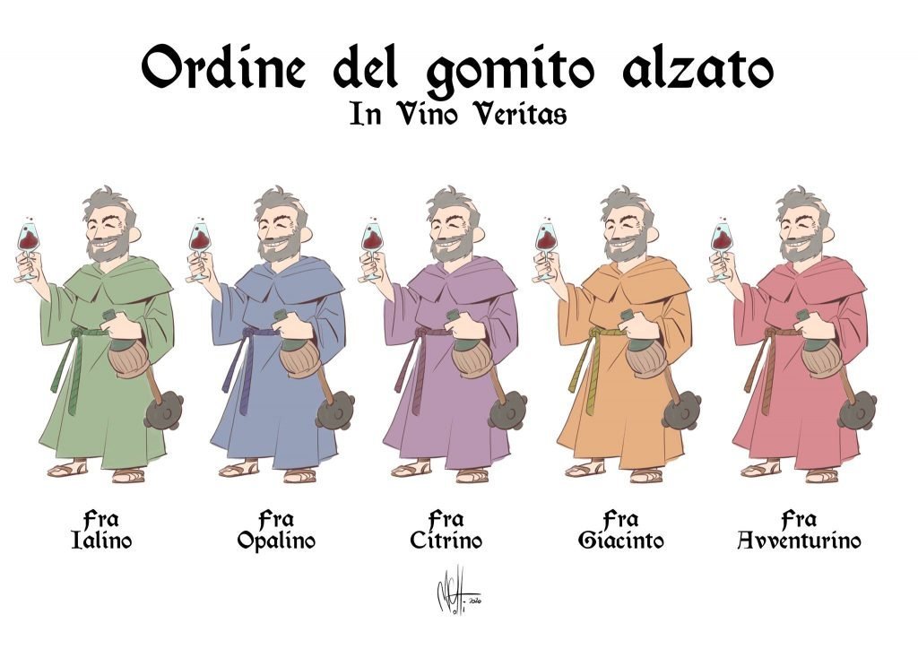 “L’ordine del Gomito Alzato è una piccola congrega di frati in cerca del Sacro Calice, una coppa mistica completamente fatta di ametista. Esplorano in continuazione dei dungeon per ricercare questa favolosa ed elusiva coppa, simbolo ultimo del loro credo. Ovviamente sono dei frati ubriaconi, visto che il fondamento del loro ordine è quello di mantenere un’ubriachezza costante per sentirsi più vicini al divino.