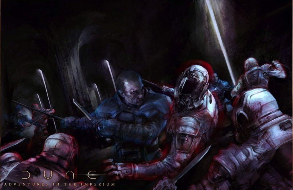 Mentre il conflitto è spesso personale, non è necessario che avvenga di persona. I personaggi in Dune possono essere burattinai tanto quanto operativi sul campo. Con il sistema delle risorse che vengono spostate in gioco, e gli ideali che sostituiscono le caratteristiche fisiche del personaggio, in Dune si può combattere restando a distanza, anche attraverso diversi pianeti. Mentre la posta in gioco e le opzioni sono un po’ diverse, il sistema è lo stesso. Si può spostare una risorsa di un gruppo di soldati per abbattere un nemico e guidarli a distanza, o andare con loro stessi. Di persona puoi fare di più per influenzare la situazione se le cose vanno male, ma da lontano nessuno potrebbe mai sapere che c’è la tua mano dietro la trama.