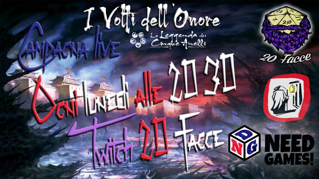 Se volete scoprire un mondo in cui “l’onore è più forte dell’acciaio”, il Lunedì sera alle 20.30 sul canale twitch di 20 Facce potete farlo con la campagna live-streaming “I VOLTI DELL’ONORE” de LA LEGGENDA DEI CINQUE ANELLI – IL GIOCO DI RUOLO masterata da Riccardo “Musta” Caverni.