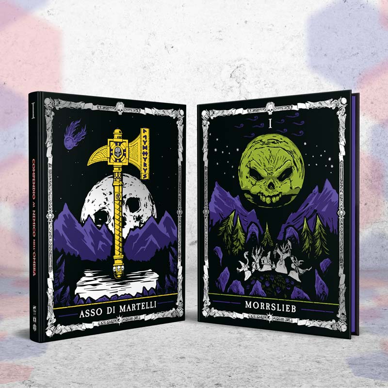 Ovviamente no! I veri abitanti del Vecchio Mondo non possono perdersi l’Edizione da Collezione, uno straordinario set composto da IL NEMICO NELL’OMBRA, il COMPENDIO AL NEMICO NELL’OMBRA, un delizioso slipcase di alta qualità, incorniciato dalla copertina dell’edizione standard, e una raccolta di handout stampati per entrare appieno nell’atmosfera della più grande campagna della storia di WFRP, di cui questo è solo il primo di cinque tetri e perigliosi capitoli. I volumi dell’Edizione da Collezione presentano delle copertine speciali in simil-pelle con dettagli UV e metalizzati, appositamente disegnate dagli artisti di WFRP, Sam Manley e Andy Law, e raffiguranti i Tarocchi di Morrslieb e dell’Asso di Martelli, accompagnati da decorazioni evocative della campagna di gioco.