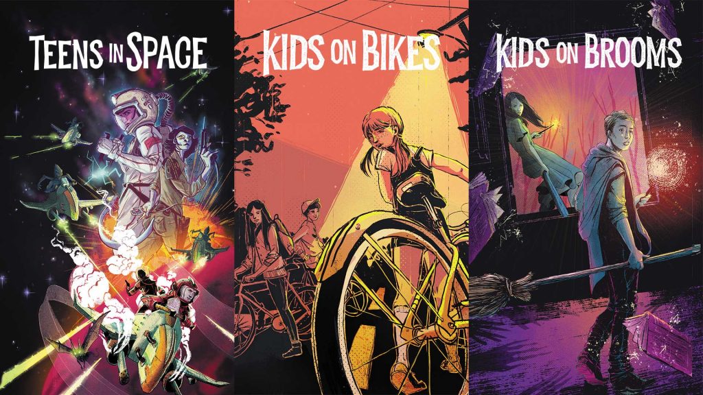 Il Powerful Trio, che include KIDS ON BIKES, TEENS IN SPACE e KIDS ON BROOMS, è caratterizzato da un regolamento snello e semplice da imparare. In esso, il gruppo di gioco viene incentivato a creare insieme il mondo in cui ambientare le proprie avventure. I personaggi possono contare su determinate caratteristiche (ciascuna con un valore di dado) e intrecciare legami con una serie di domande che vanno da approfondire anche il background del gruppo. La narrazione viene alternata tra Gamemaster e giocatori a seconda dei successi o fallimenti nelle prove, fallimenti che non devono generare disperazione: ogni Prova non superata può garantire infatti dei Segnalini Avversità, con cui è possibile in seguito rimediare agli errori e generare nuove opportunità narrative.