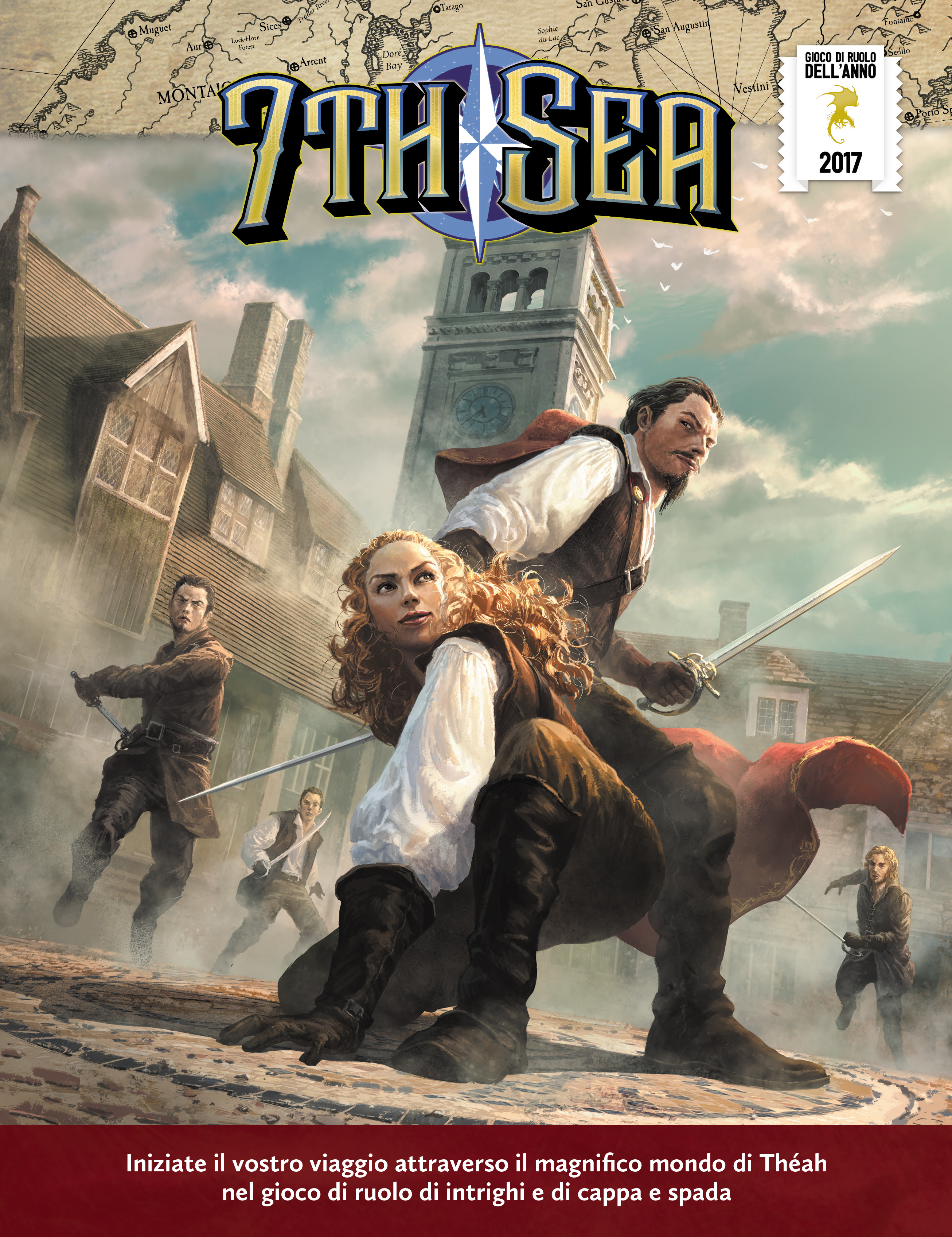 7TH SEA – SECONDA EDIZIONE è il Gioco di Ruolo “cappa e spada” con intrighi, magia, amore e avventura! Preparatevi a entrare in un mondo di pirateria, diplomazia, archeologia ed esplorazione, dove moschettieri, bucanieri e corsari si fondono con antiche stregonerie e civiltà perdute, tra segreti celati nelle ombre e mostri nascosti sotto gli occhi di tutti.