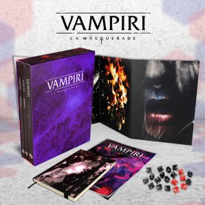 La 5ed. di Vampiri: La Masquerade è un gioco narrativo di horror personale e politico che recupera il sapore originale del gioco. Le regole di questa edizione sono al servizio del Narratore e un nuovo e suggestivo layout realizzato dall’acclamata squadra di Fria Ligan trasformano la 5ed. di Vampiri: La Masquerade in un affascinante gioco sia per i fan più accaniti del Mondo di Tenebra sia per i nuovi giocatori.