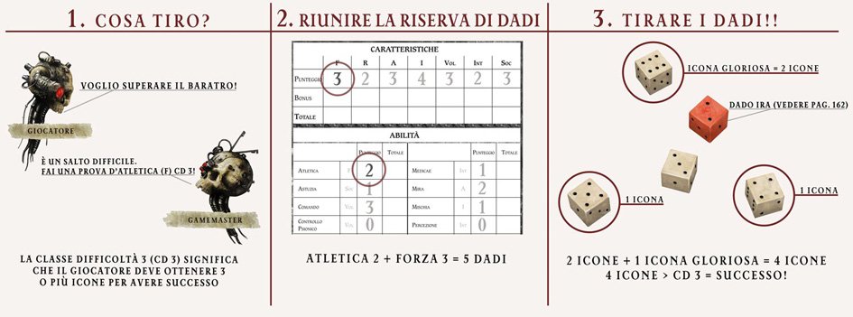 • Il Dado Ira rende tutto più drammatico: sferrate possenti Critici d’Ira e generate Gloria per l’intero gruppo, ma fate attenzione alle Complicazioni (e alla Rovina) sempre dietro l’angolo.