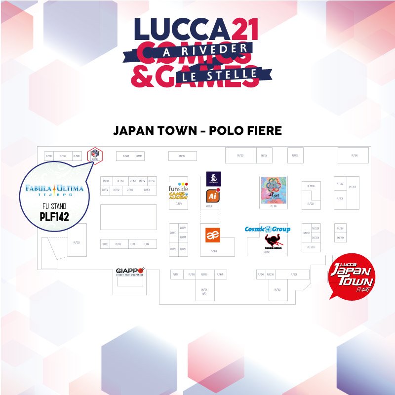 Quest’anno saremo infatti presenti alla fiera con ben due stand: uno nell’AREA GAMES (presso l’EX CAVALLERIZZA) e uno interamente dedicato a FABULA ULTIMA presso JAPAN TOWN!