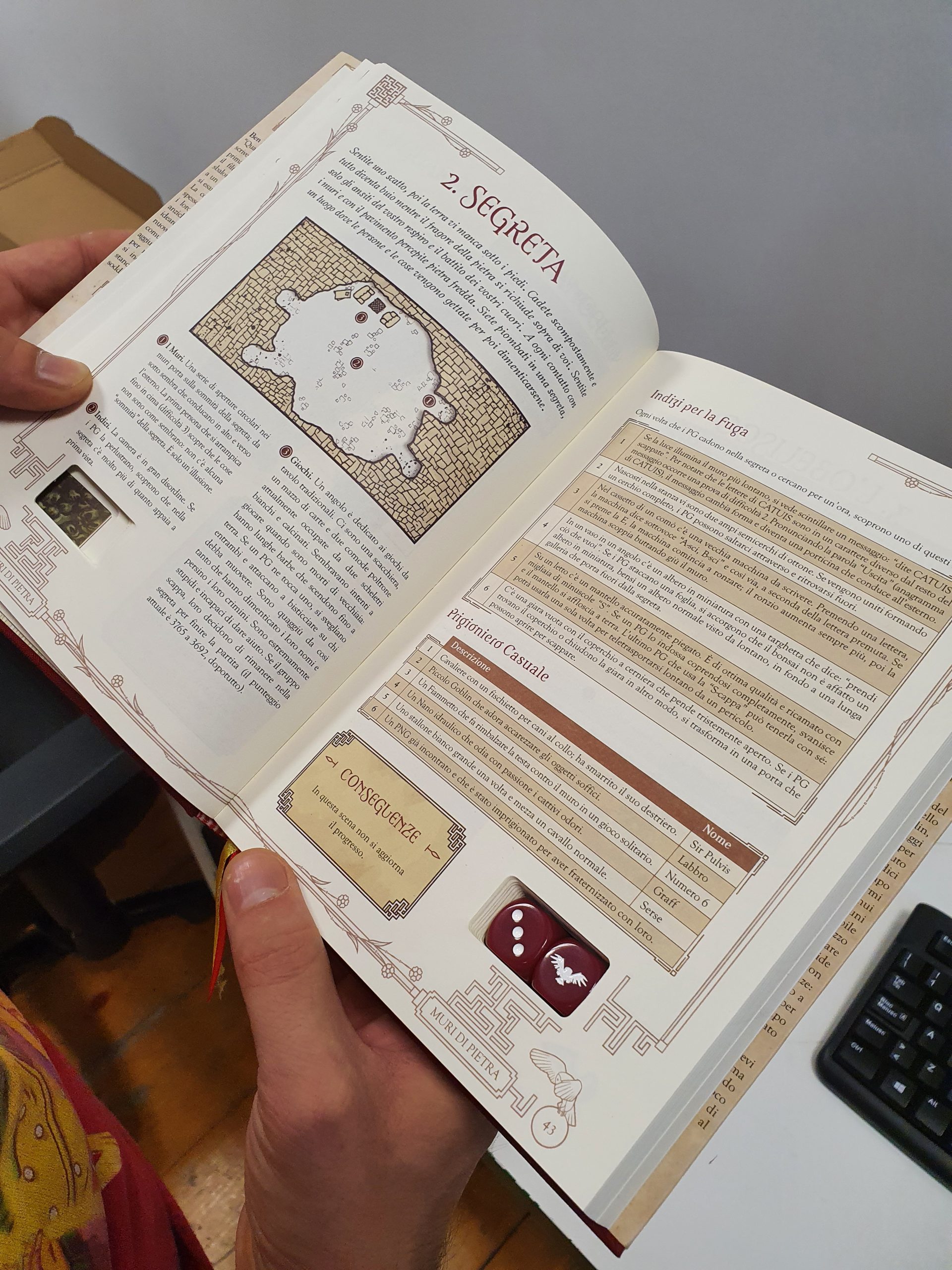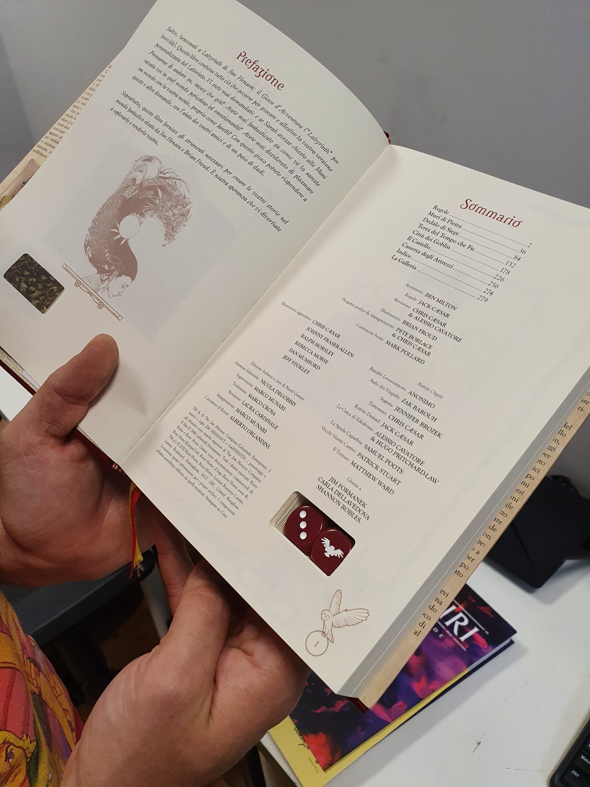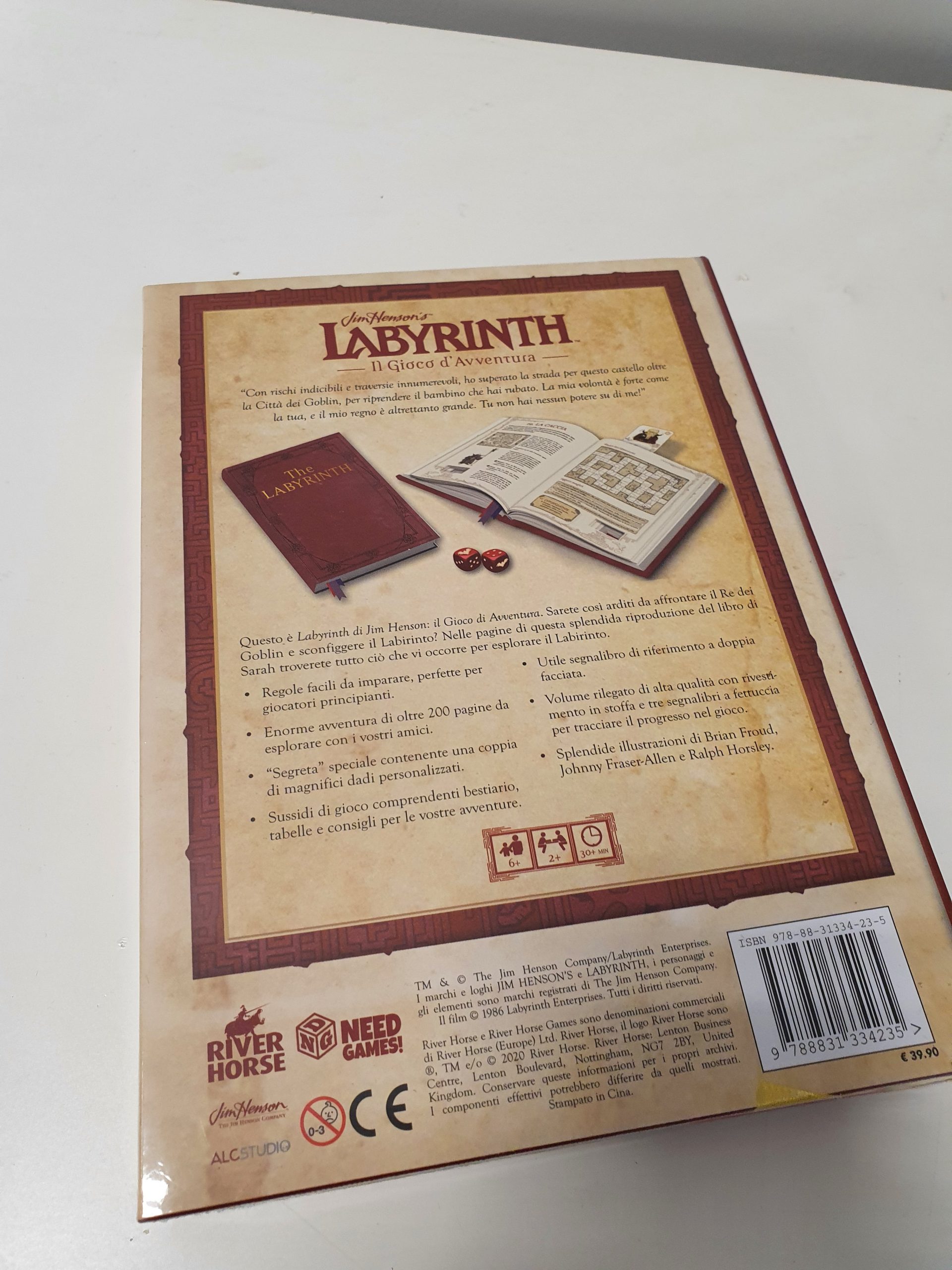 LABYRINTH – IL GIOCO D’AVVENTURA è un libro cartonato con sovracopertina di 300 pagine a colori, comprendente due dadi personalizzati e segnalibro. Versione PDF inclusa.