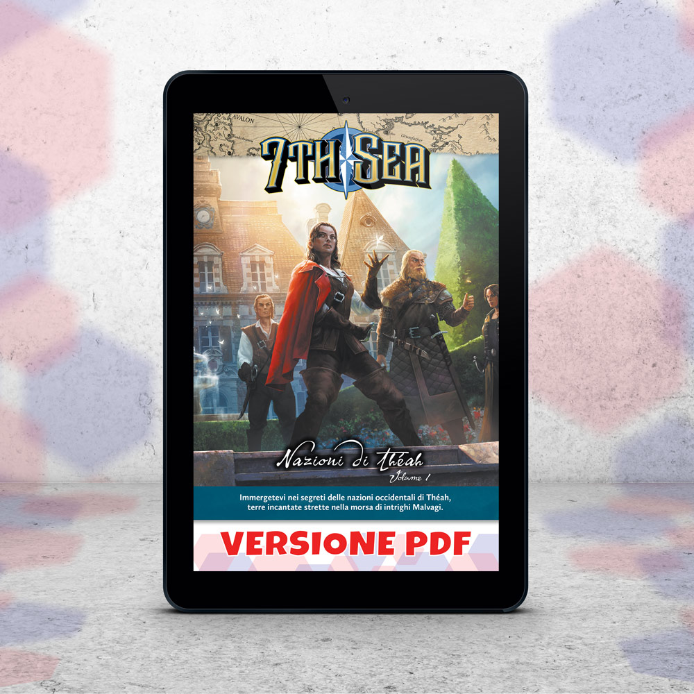 VERSIONE PDF – NAZIONI DI THÉAH VOL.1 contiene materiale per 7th Sea Seconda Edizione compresi nuovi Background, Vantaggi, Stili di Duello e altro ancora. Include inoltre una miriade di informazioni sulle quattro nazioni occidentali di Théah.